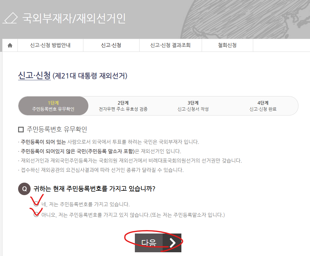 *주민번호가 있는 분들은 선거 때마다 매번 등록해야 하므로, 이번에도 꼭 등록해야 합니다.