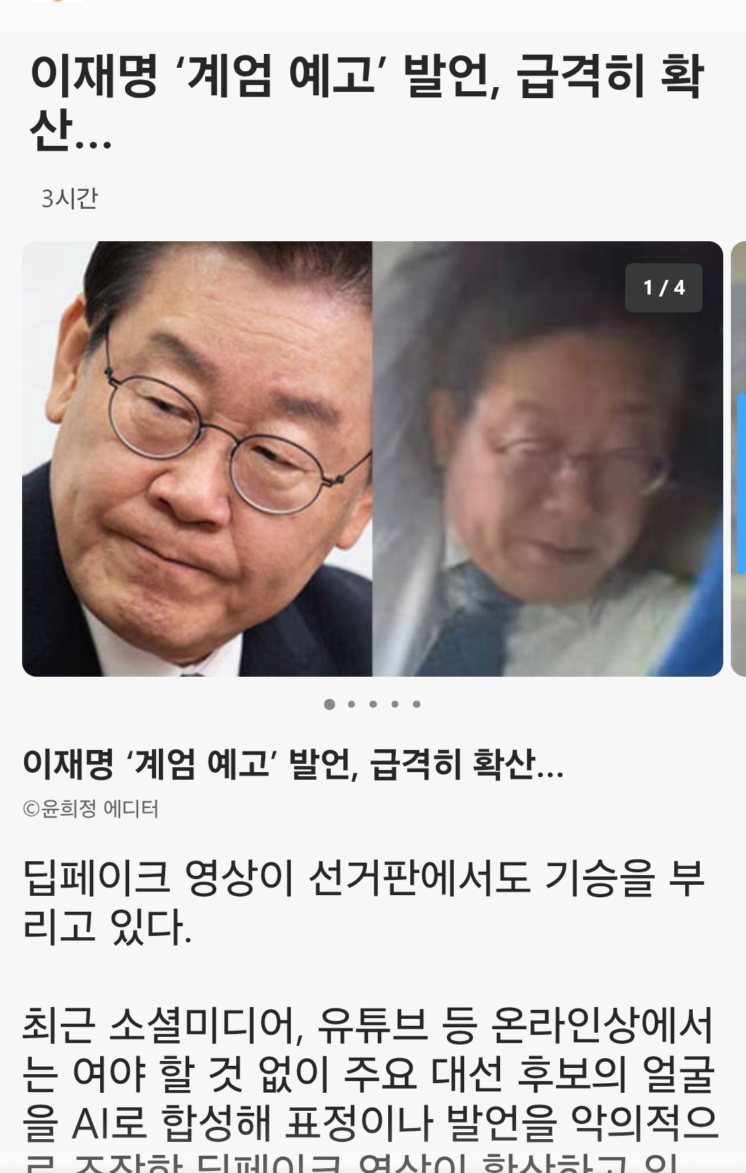 딥페이크 불법영상, 가짜뉴스, , 이재명 ‘계엄 예고’ 발언, 급격히 확산… News2025. 5. 14. 14:20