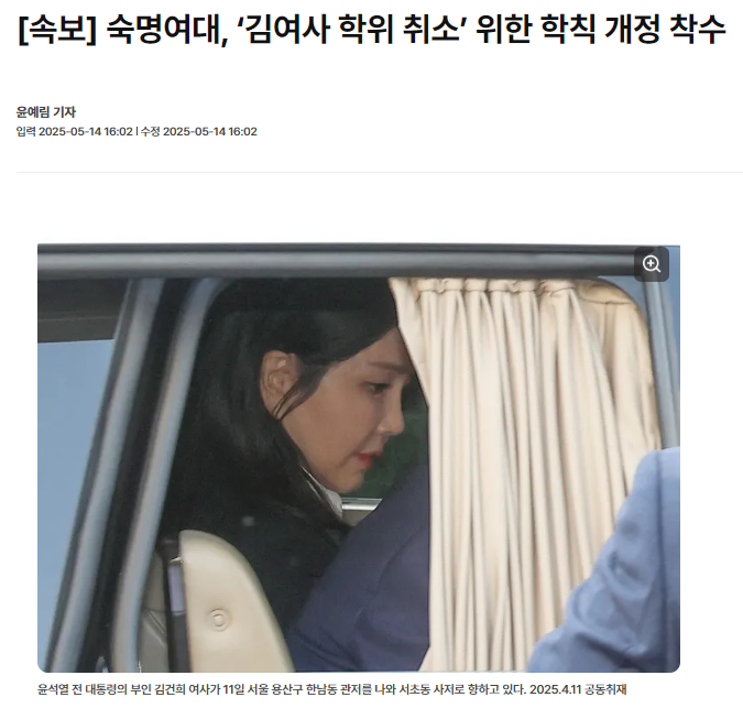 숙명여대, 김여사 학위 취소 위한 학칙 개정 착수 News2025. 5. 14. 17:25