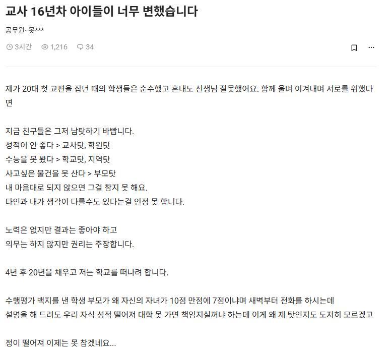 16년차 교사 "아이들이 너무 변했다" News2025. 6. 27. 16:58