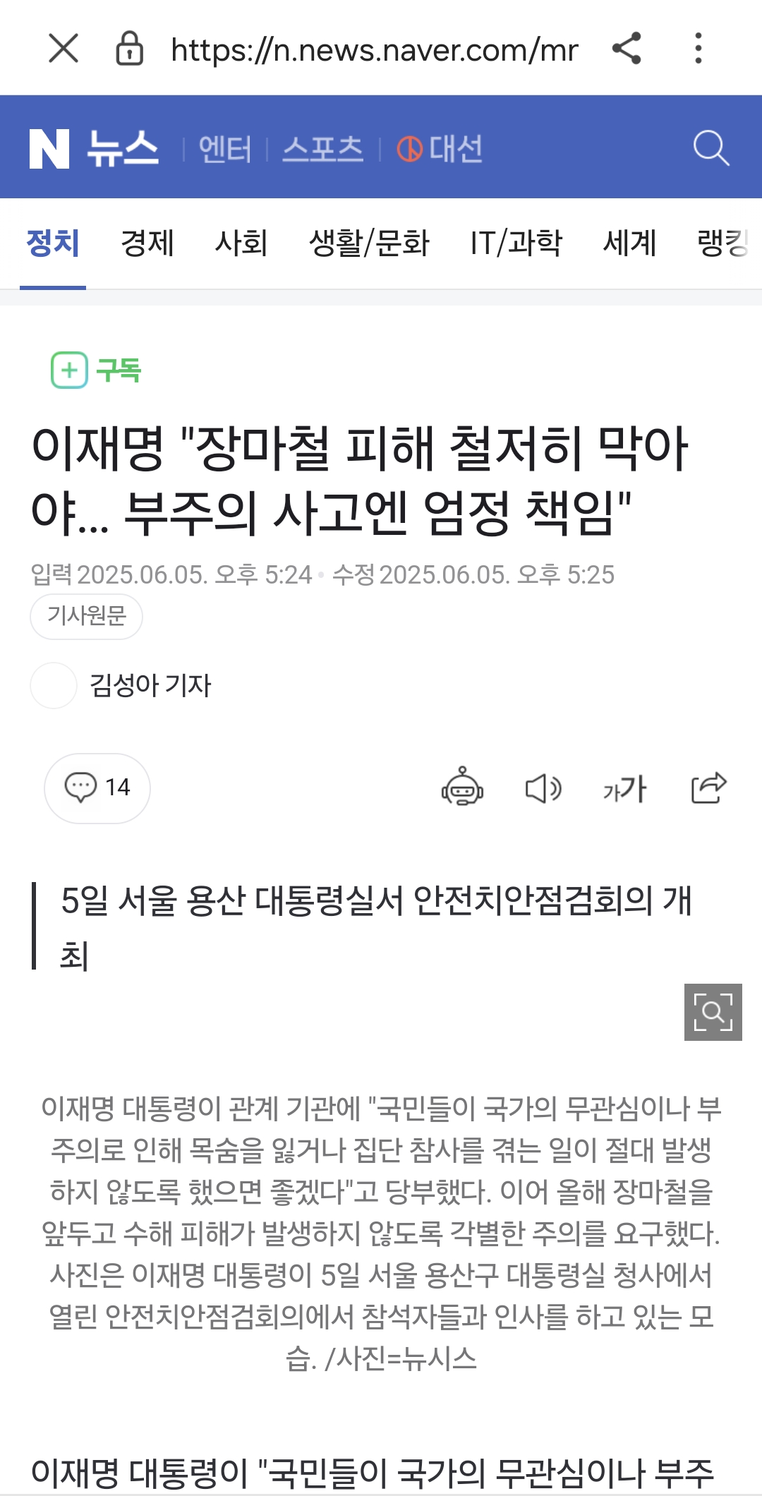 장마에 대한 대통령의 대처? News2025. 6. 28. 13:04