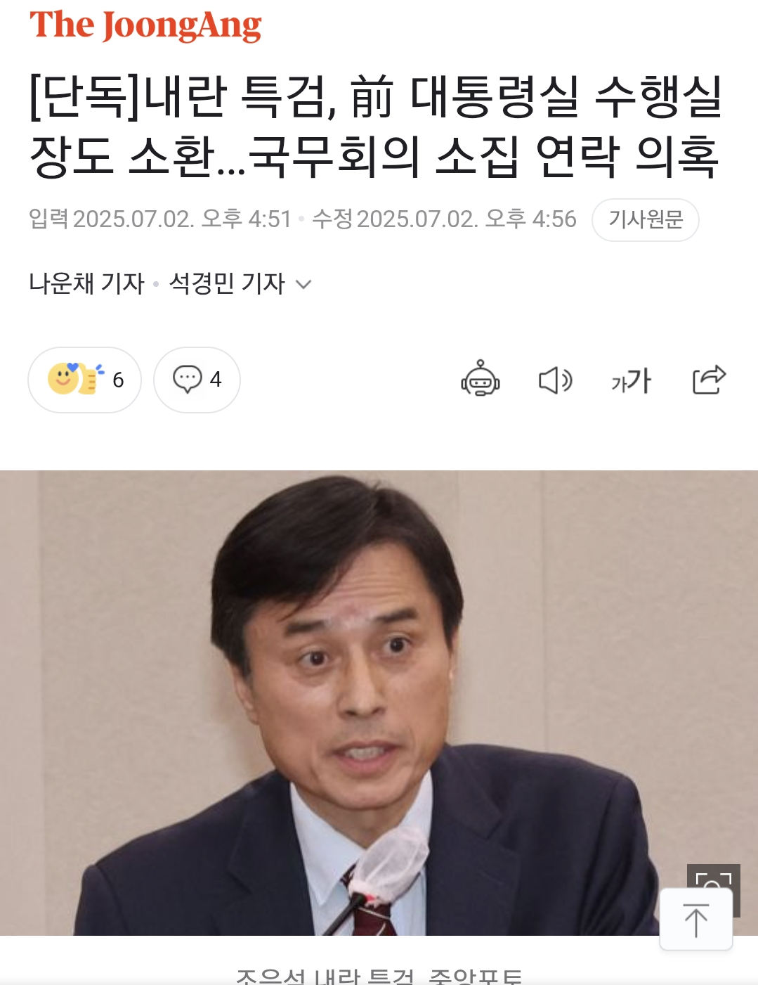 단독]내란 특검, 前 대통령실 수행실장도 소환…국무회의 소집 연락 의혹 News2025. 7. 2. 17:50