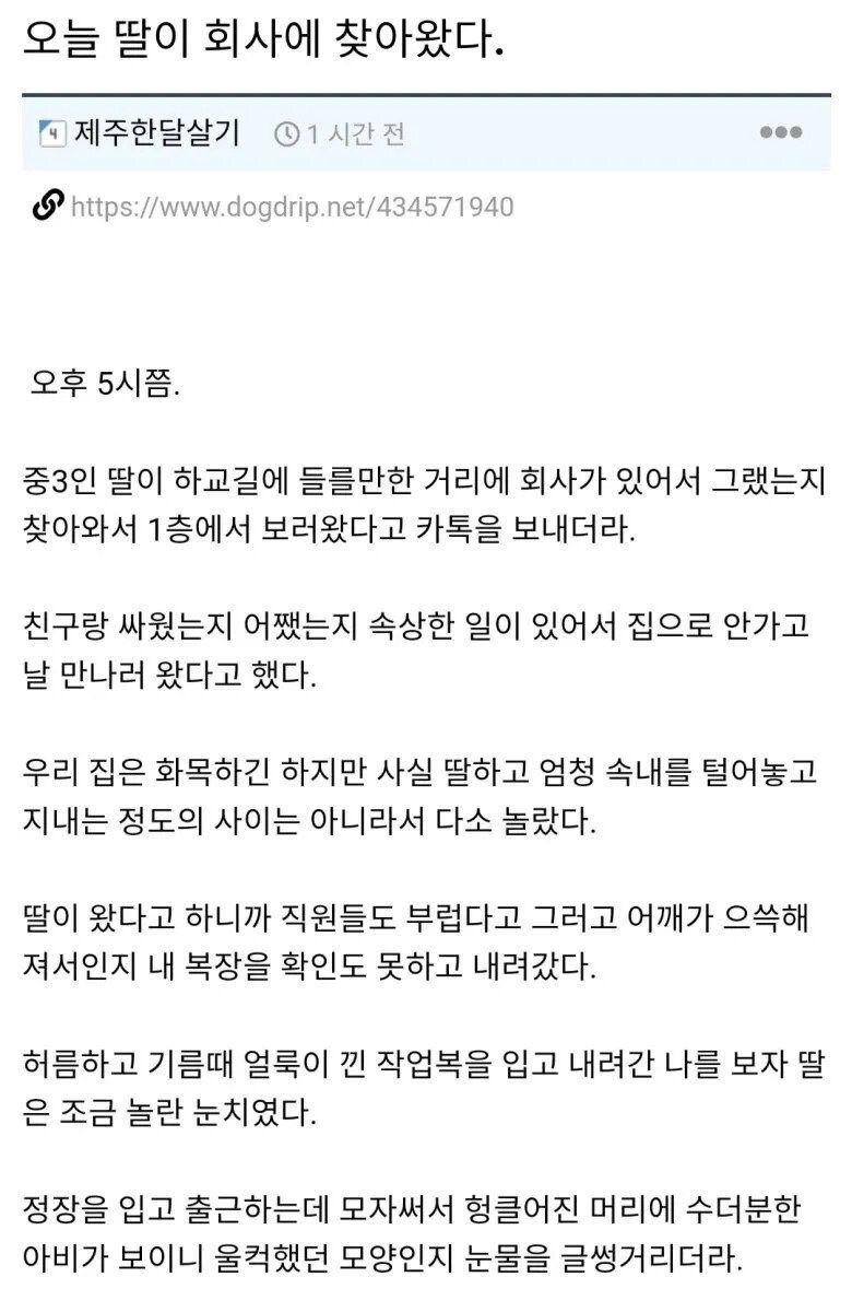 [감동] 회사에 찾아온 중3 딸