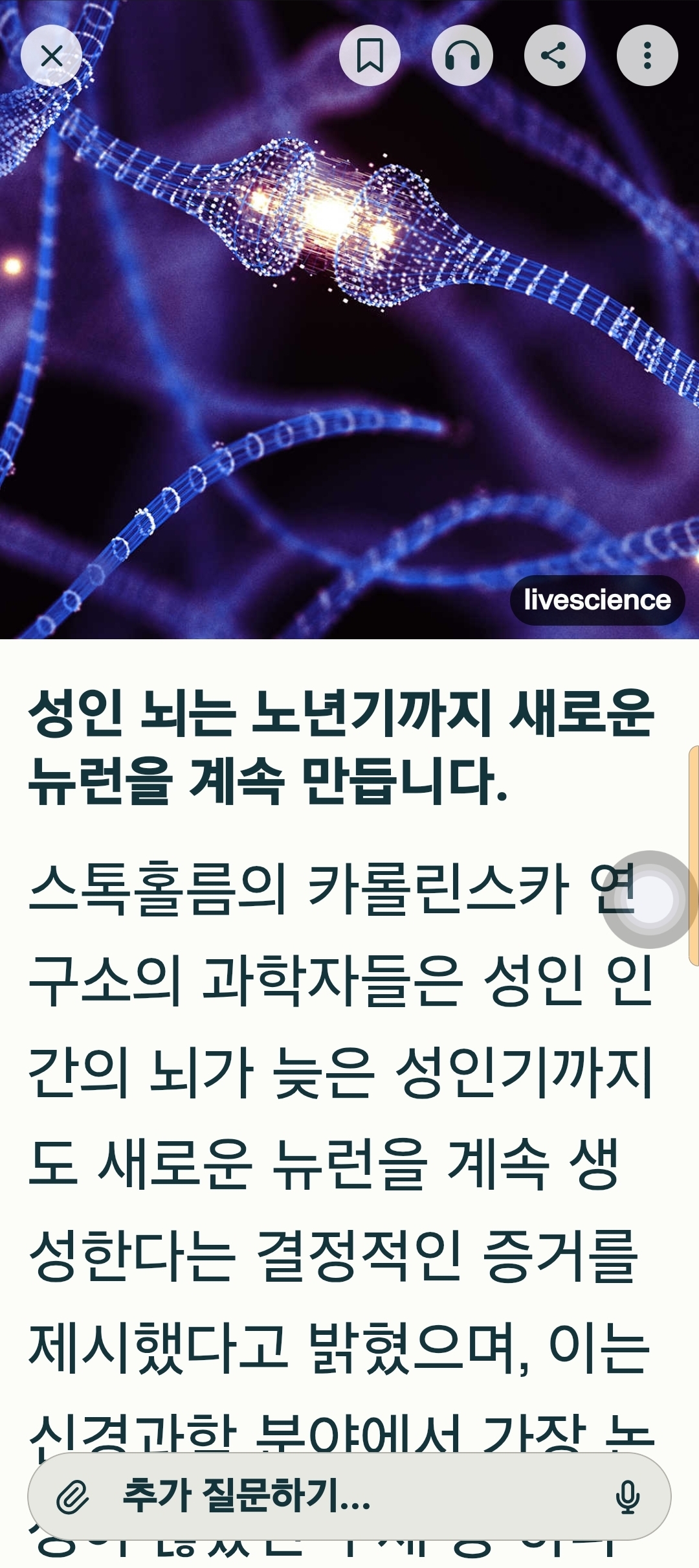 성인 뇌는 노년기까지 새로운 뉴런을 만들다. News2025. 7. 7. 17:34