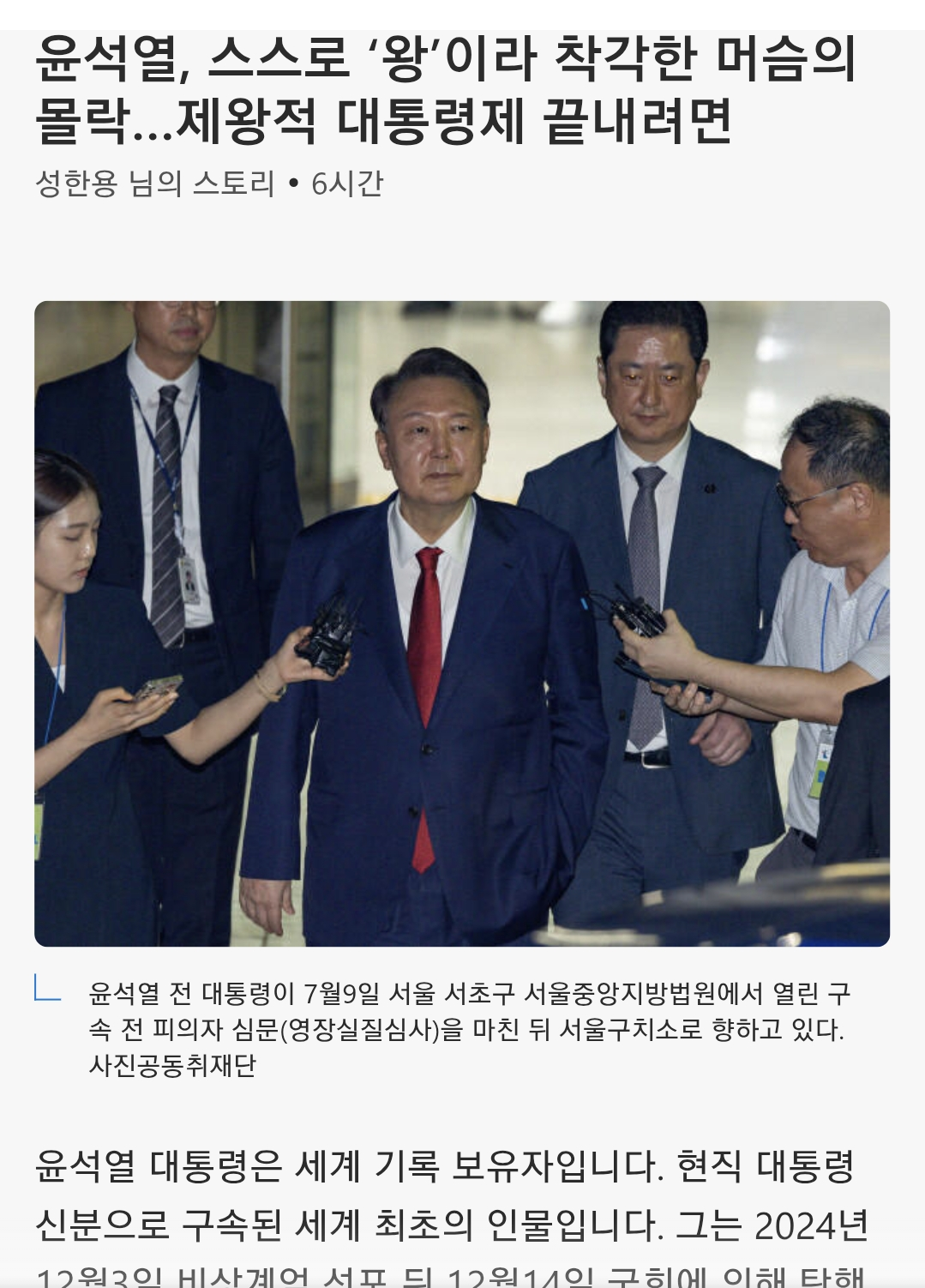 윤석열, 스스로 ‘왕’이라 착각한 머슴의 몰락…제왕적 대통령제 끝내려면 News2025. 7. 13. 15:54