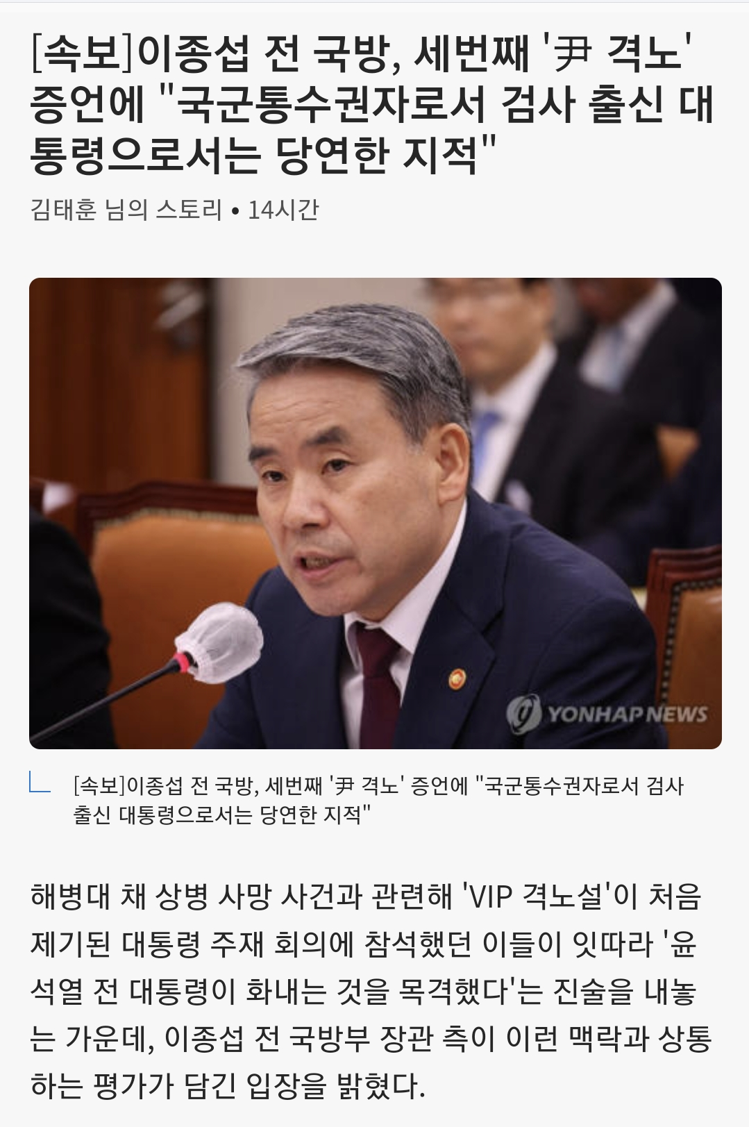 [속보]이종섭 전 국방, 세번째 '尹 격노' 증언에 "국군통수권자로서 검사 출신 대통령으로서는 당연한 지적" News2025. 7. 17. 11:45
