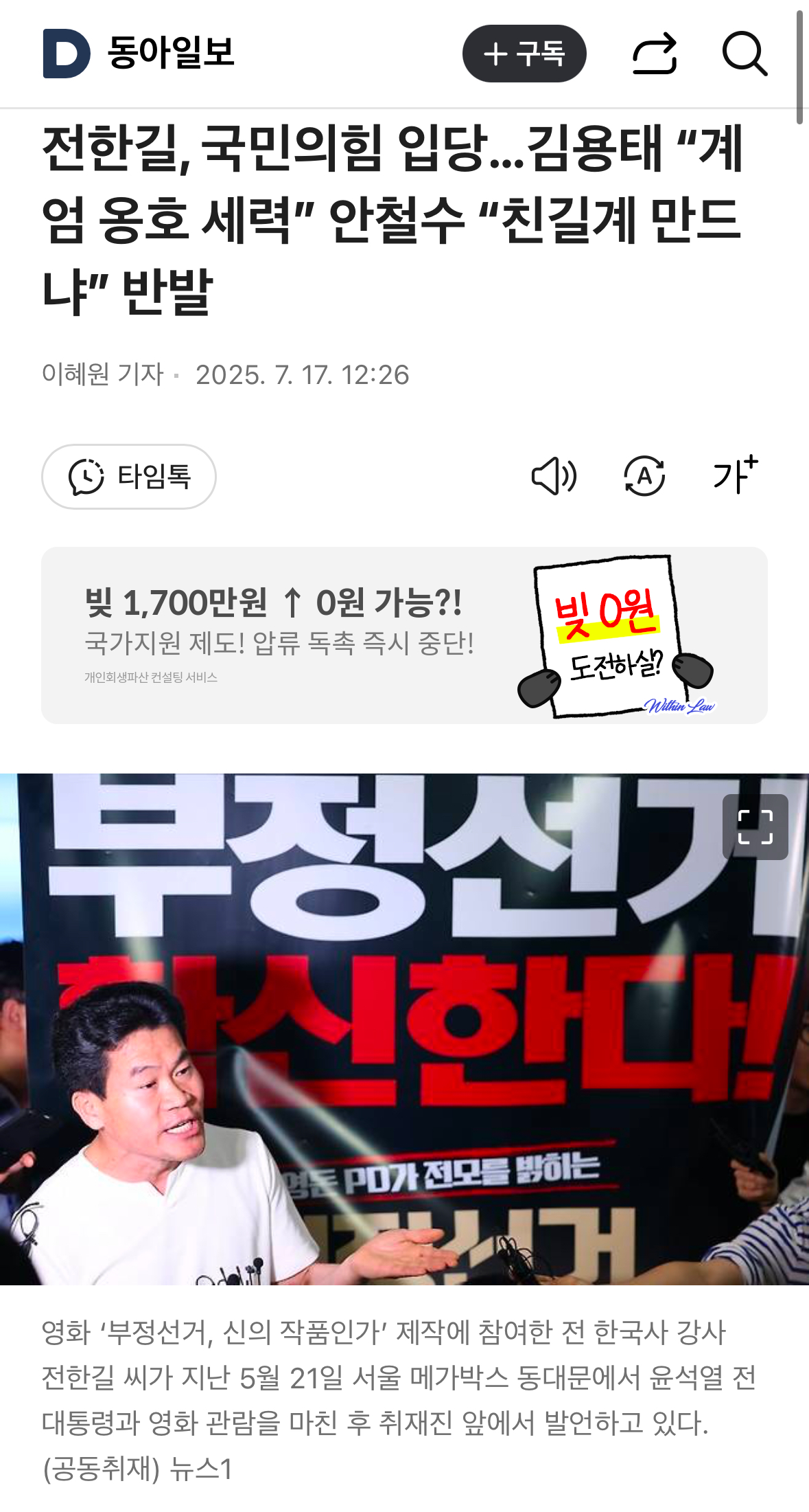 전한길, 국민의힘 입당 논란…김용태 "사이비" 안철수 "부끄러워" News2025. 7. 17. 13:00