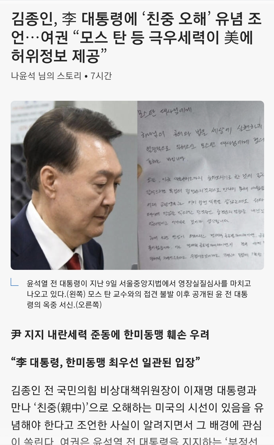 김종인, 李 대통령에 ‘친중 오해’ 유념 조언…여권 “모스 탄 등 극우세력이 美에 허위정보 제공” News2025. 7. 19. 19:47