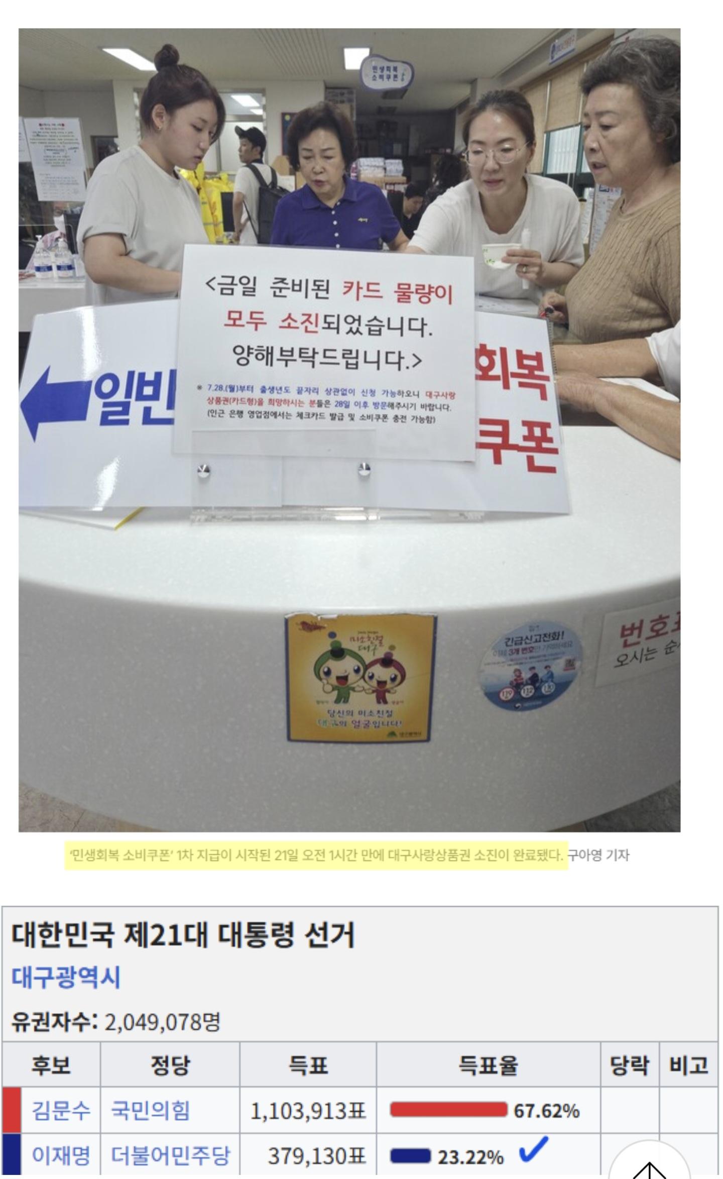 금일 준비된 민생회복 쿠폰 물량 모두 소진