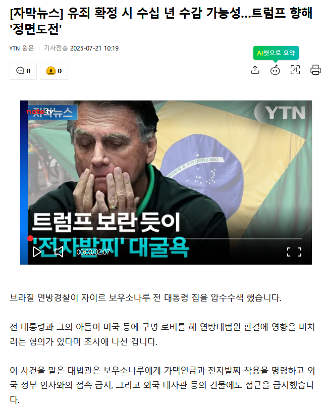 트럼프 대놓고 엿먹인 브라질 검찰 News2025. 7. 21. 20:15