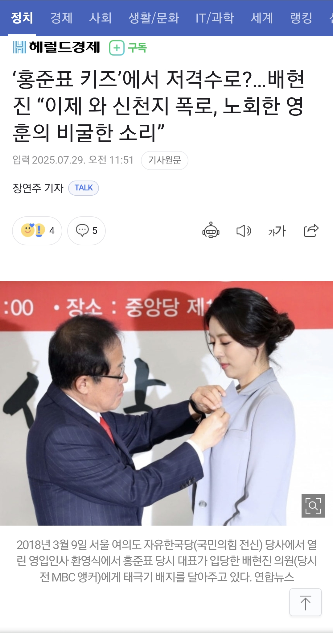 배현진, 배신의 아이콘 되나? 홍준표 키즈’에서 저격수로?…배현진 “이제 와 신천0 폭로, 노회한 영훈의 비굴한 소리”