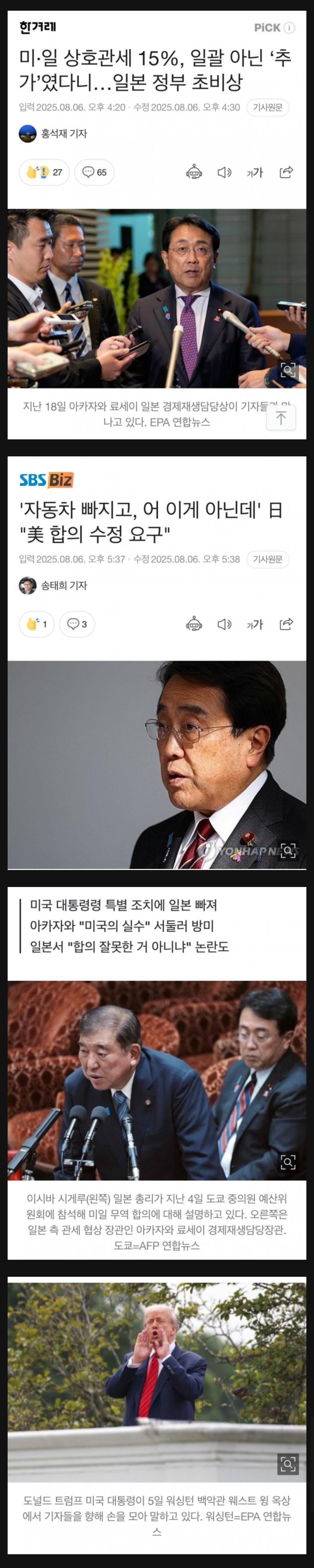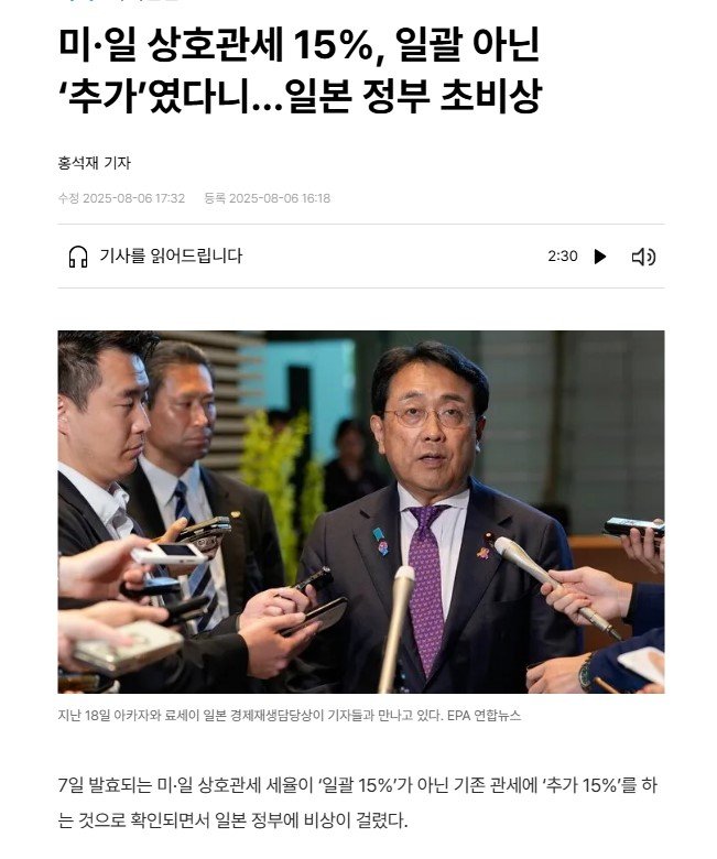 미·일 상호관세 15%, 일괄 아닌 ‘추가’였다니…일본 정부 초비상 News2025. 8. 6. 19:11
