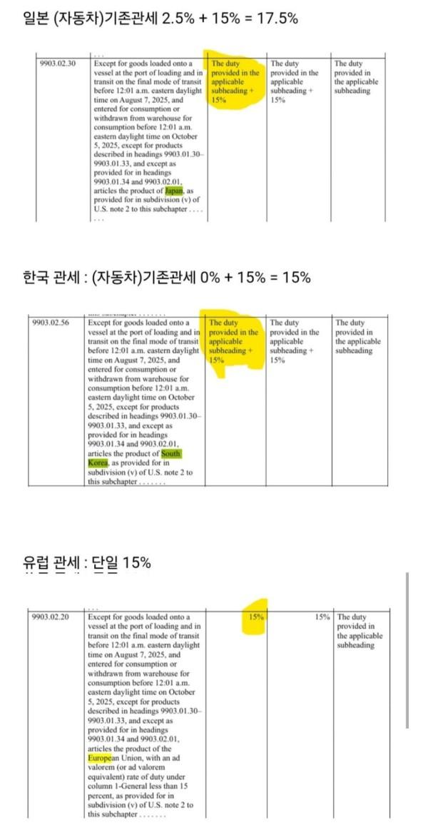 백악관 오피셜) JAPAN17.5% S.KOREA 15% EU 15%