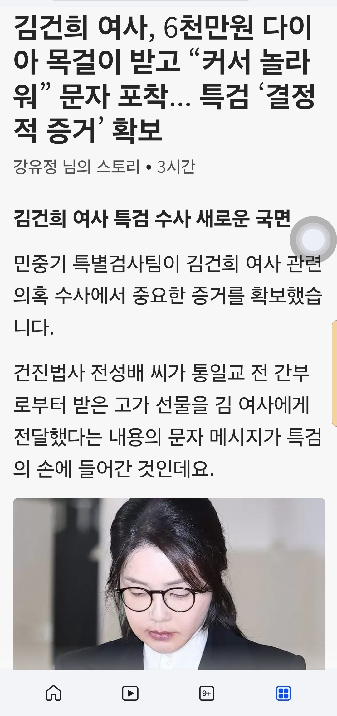 김건희 여사, 6천만원 다이아 목걸이 받고 “커서 놀라워” 문자 포착... 특검 ‘결정적 증거’ 확보