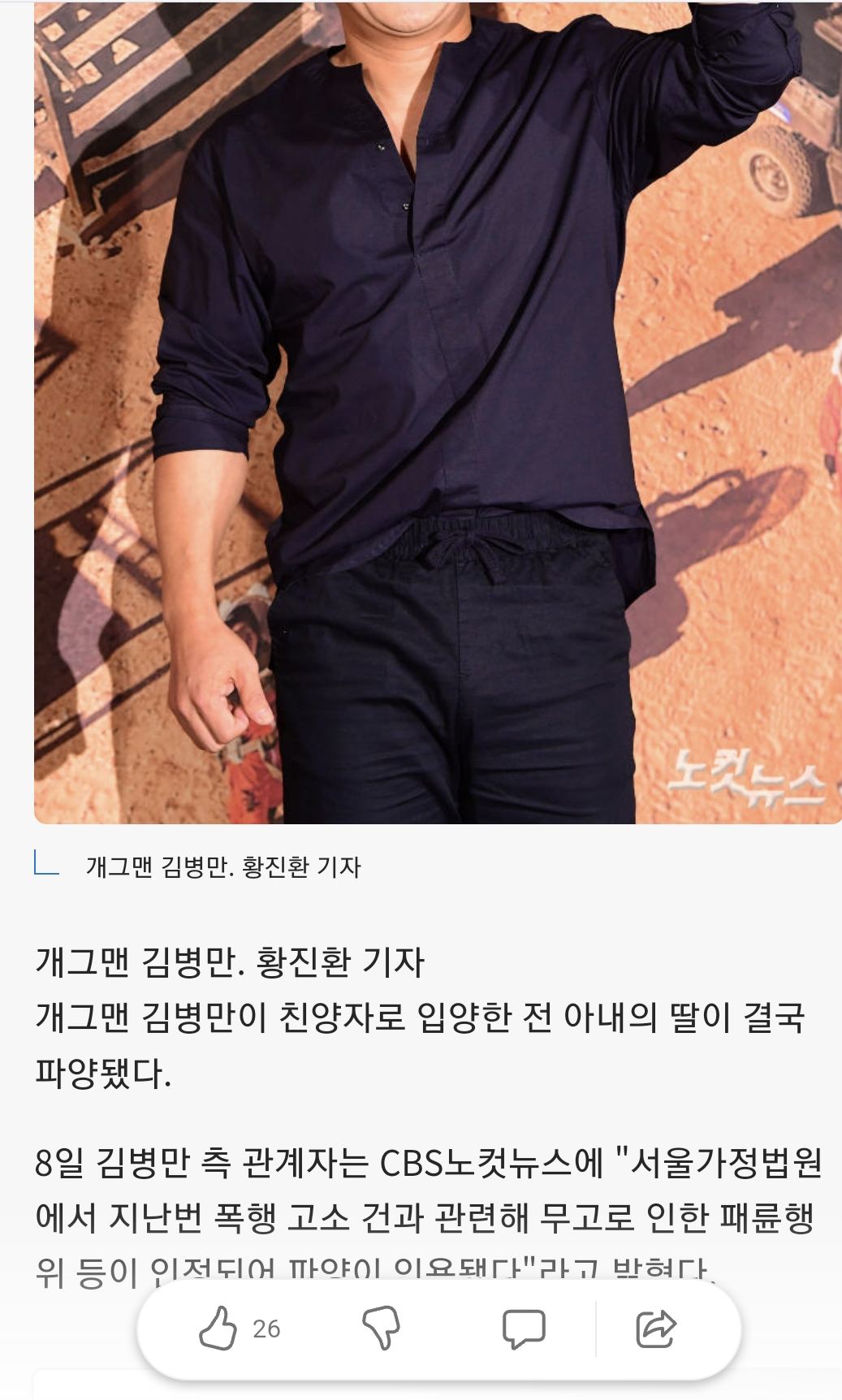 김병만 전처 딸 결국 파양…"폭행 무고로 패륜행위 인정" News2025. 8. 9. 00:02
