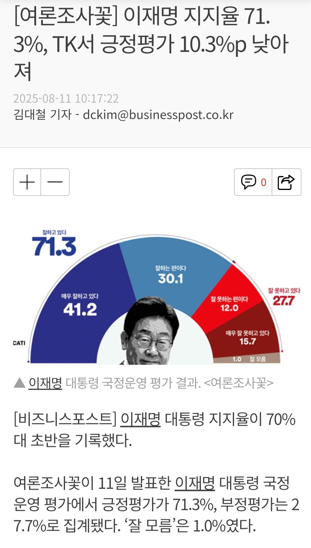 이재명 지지율 71.3% News2025. 8. 11. 13:42