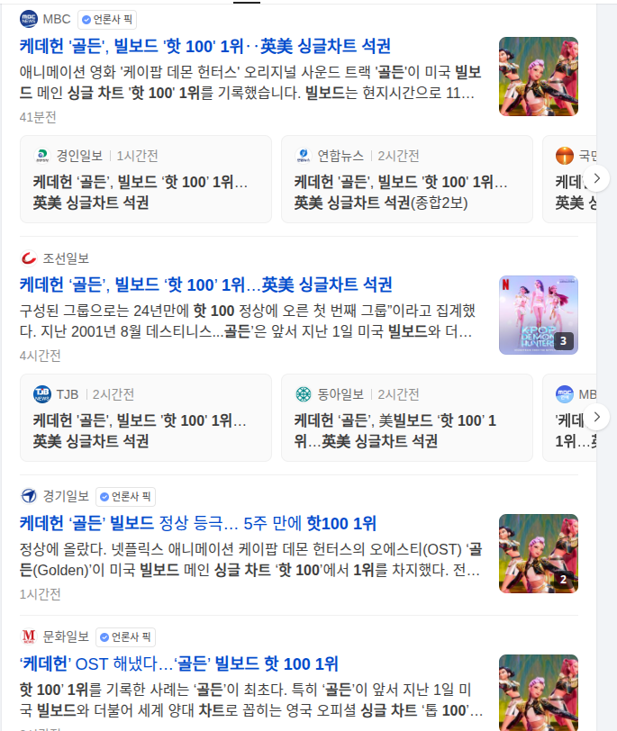K-POP DAEMON HUNTERS 케데헌 '골든', 빌보드 '핫 100' 1위…英美 싱글차트 석권 News2025. 8. 12. 10:57