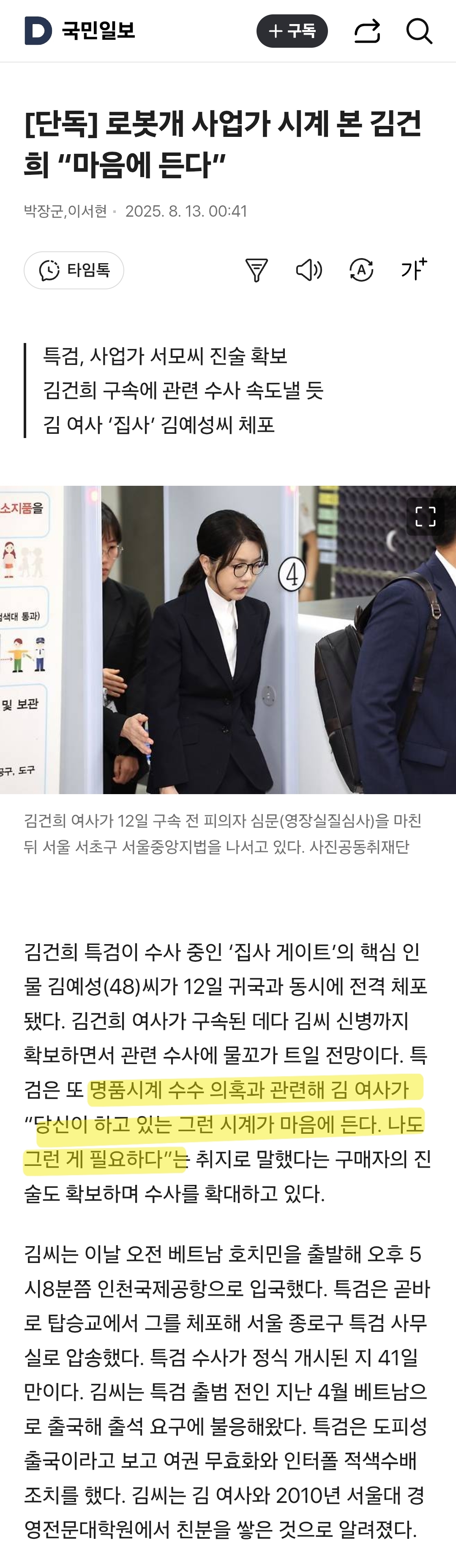 김건희 "저 감방 가나요" 다짜고짜 6자 문자 (1) | 2025.08.13 |