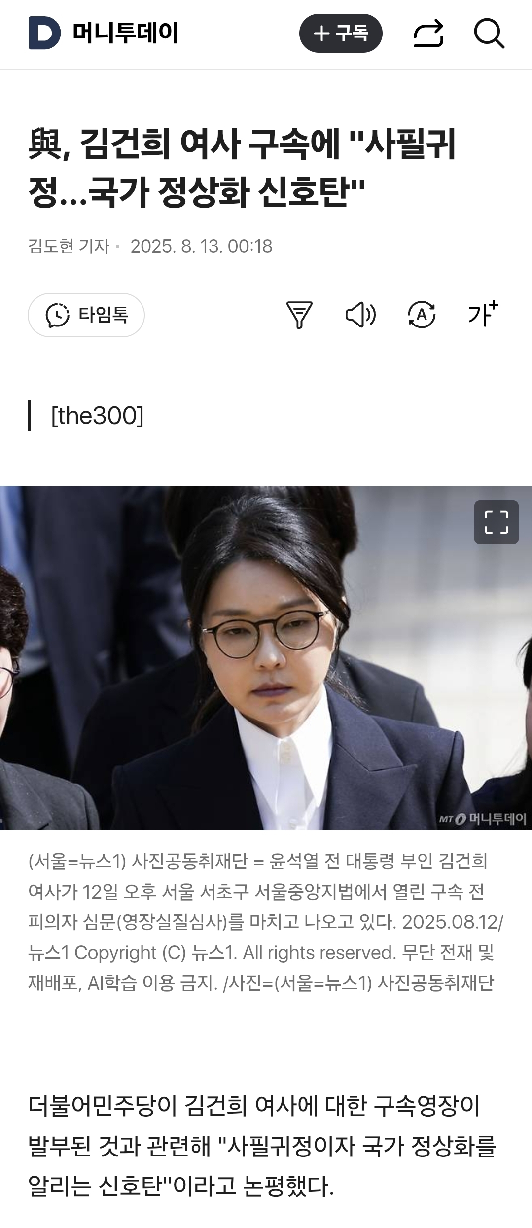 [속보]법원, 김건희씨 구속영장 발부…대통령 부부 동시 구속 "증거 인멸 염려" 사필귀정 News2025. 8. 13. 00:06