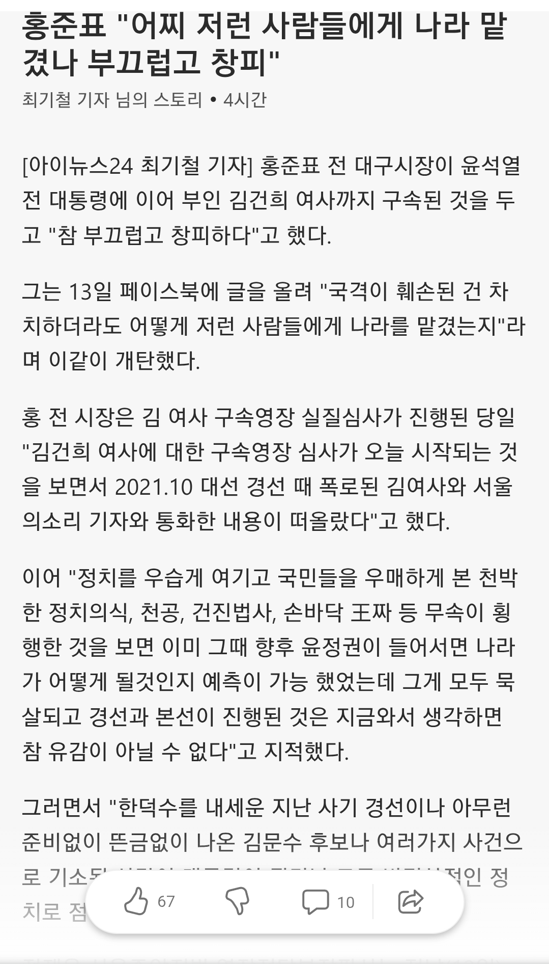 홍준표 "어찌 저런 사람들에게 나라 맡겼나 부끄럽고 창피" News2025. 8. 13. 14:43