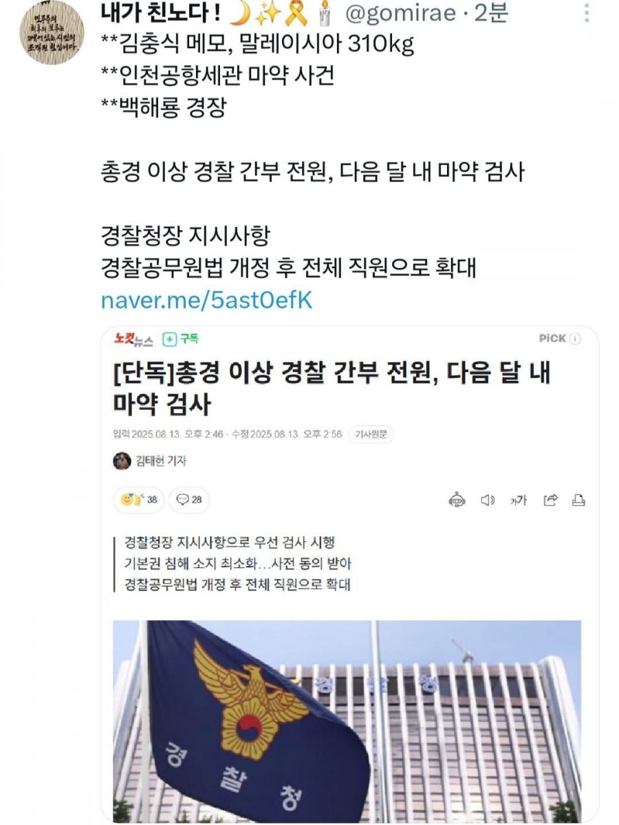 경찰 간부 전원, 마약 검사 실시 News2025. 8. 13. 16:50