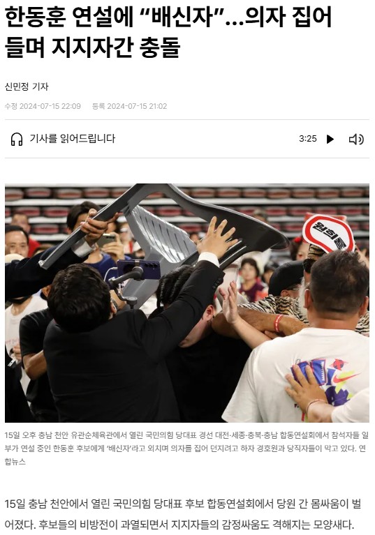 국민의 힘 몸싸움 하는 당대표 후보 지지자들 News2025. 8. 13. 23:00