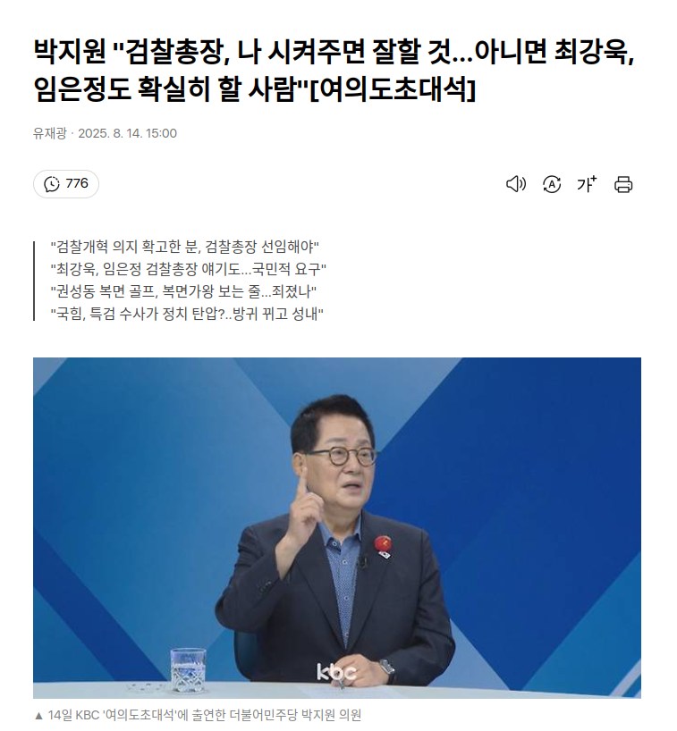 박지원 검찰개혁 막강화력 검찰총장 욕심 "검찰총장, 나 시켜주면 잘할 것...아니면 최강욱, 임은정도 확실히 할 사람" News2025. 8. 14. 19:13