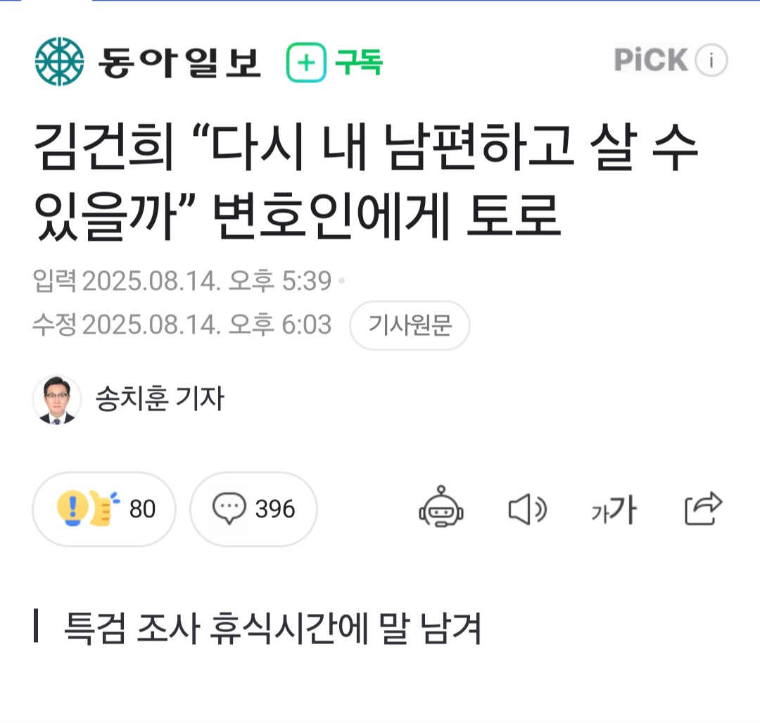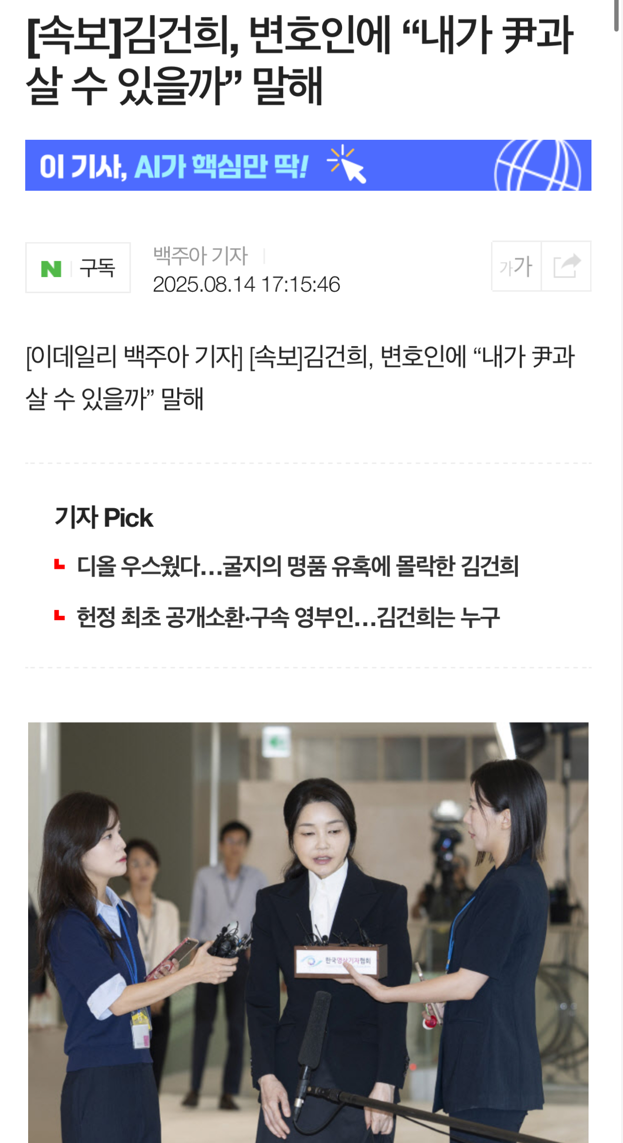 [속보]김건희, 변호인에 “내가 尹과 살 수 있을까” 말해 News2025. 8. 14. 19:23