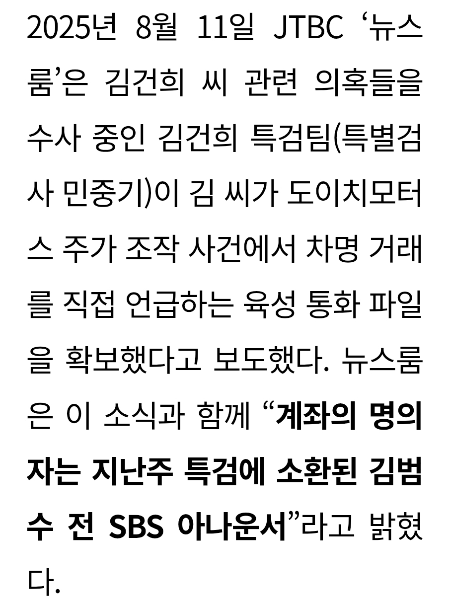 | [단독] 김건희, 4700만원 송금받고 '수표 2000만원'도 받았다…손실액과 '일치' (0) | 2025.08.14 |