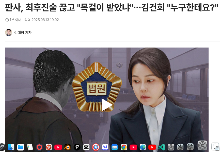 | [속보]김건희, 변호인에 “내가 尹과 살 수 있을까” 말해 (0) | 2025.08.14 |
