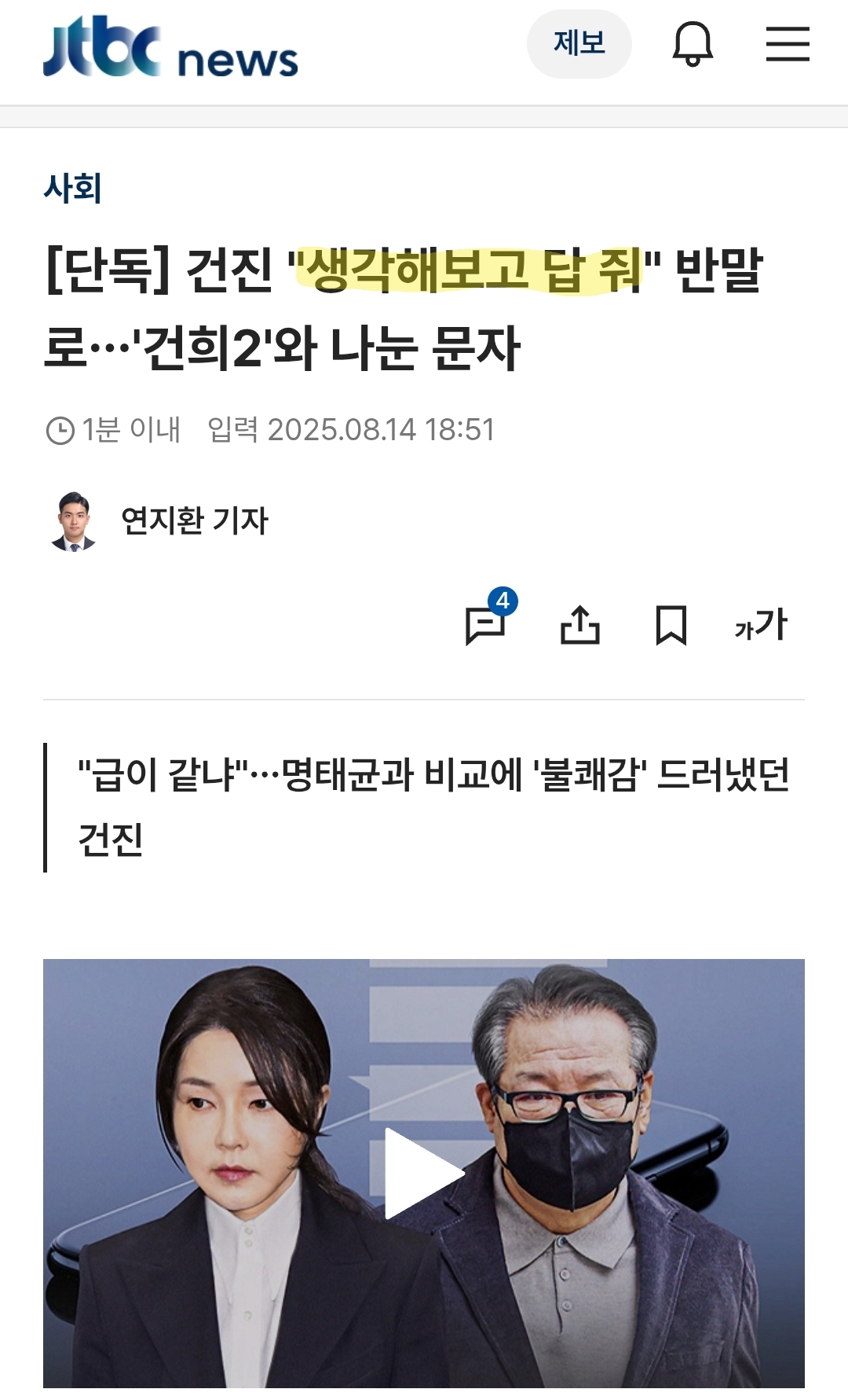 건진 "생각해보고 답을줘" 건희2 "급이 같냐" 명태균과 비교 News2025. 8. 15. 11:27