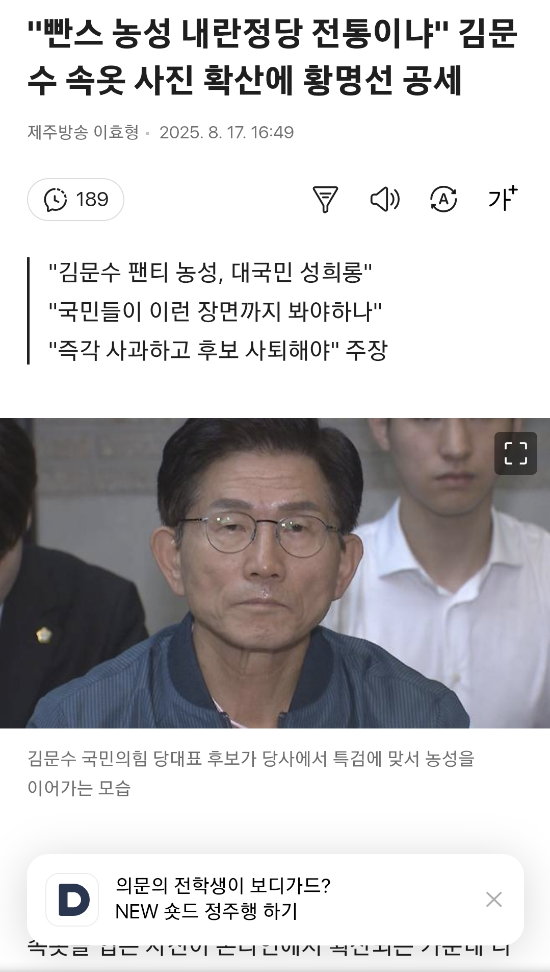 "빤스 농성 내란정당 전통이냐" 김문수 속옷 사진 확산에 News2025. 8. 17. 18:27