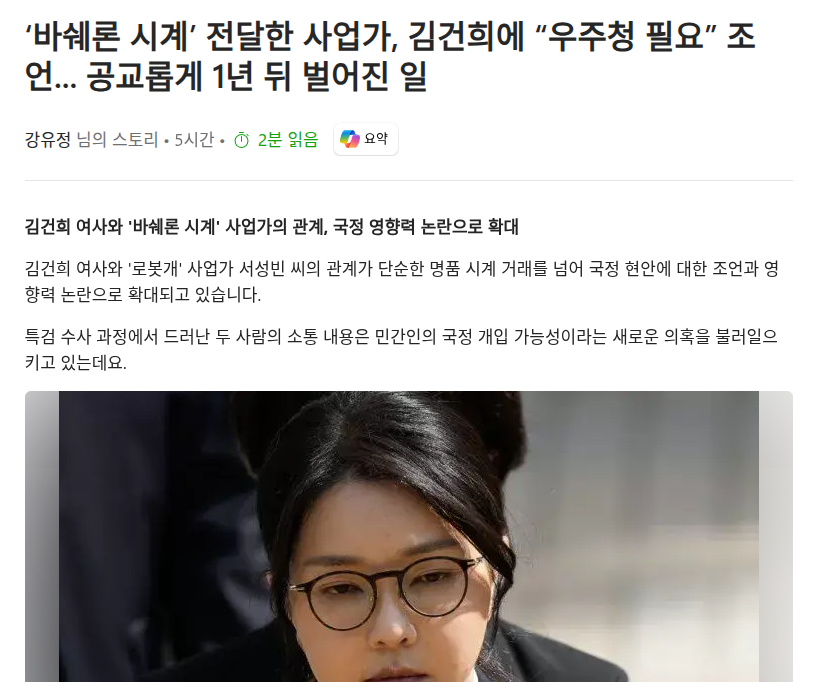 Daum 검색에서 ‘바쉐론 시계’ 전달한 사업가, 김건희에 “우주청에 대한 최신정보를 찾아보세요.