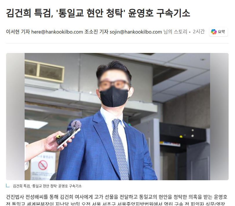 김건희 특검, '통일교 현안 청탁' 윤영호 구속기소 News2025. 8. 18. 16:56