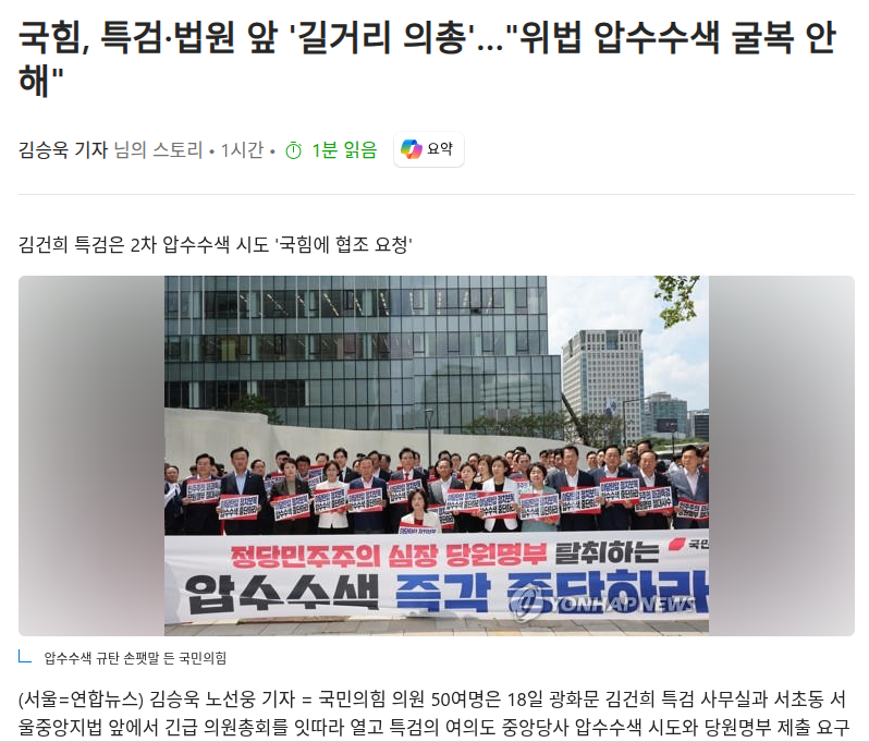 국힘, 특검·법원 앞 '길거리 의총'…"위법 압수수색 굴복 안해" News2025. 8. 18. 18:31
