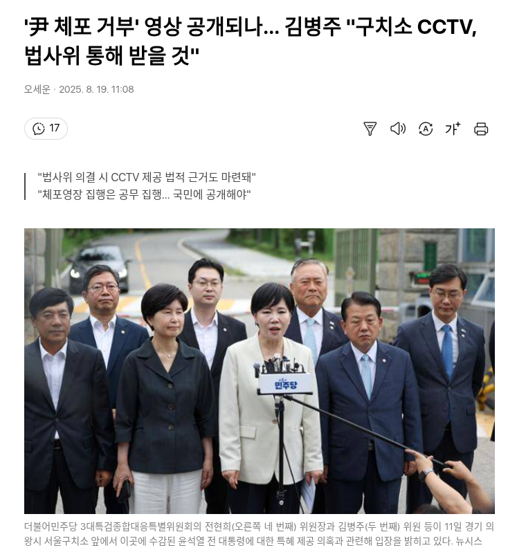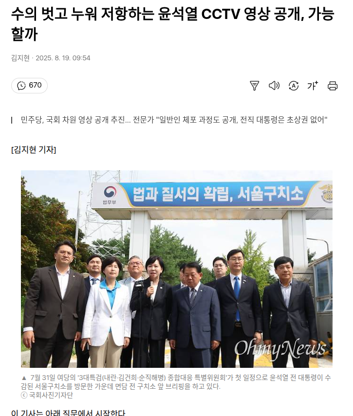 수의 벗고 누워 저항하는 윤석열 CCTV 영상 공개, 가능할까