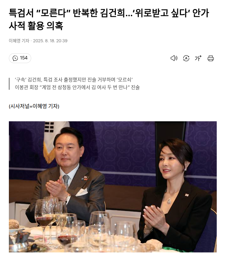 특검서 “모른다” 반복한 김건희…‘위로받고 싶다’ 안가 사적 활용 의혹 News2025. 8. 19. 12:31