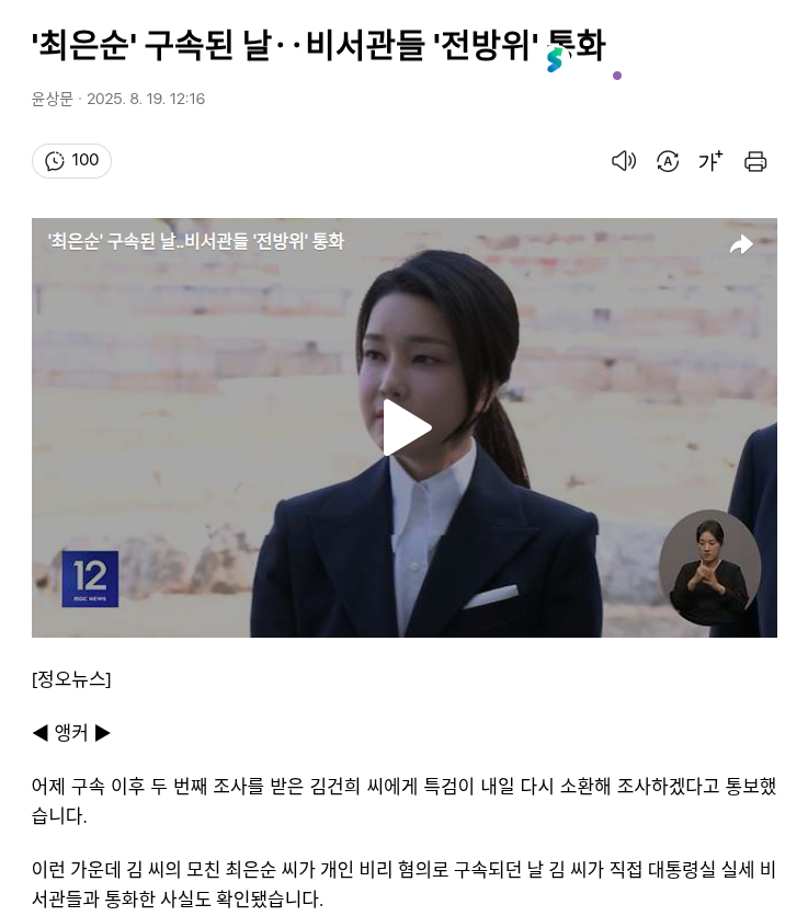 김건희, '최은순' 구속된 날‥비서관들 '전방위' 통화 News2025. 8. 19. 19:43