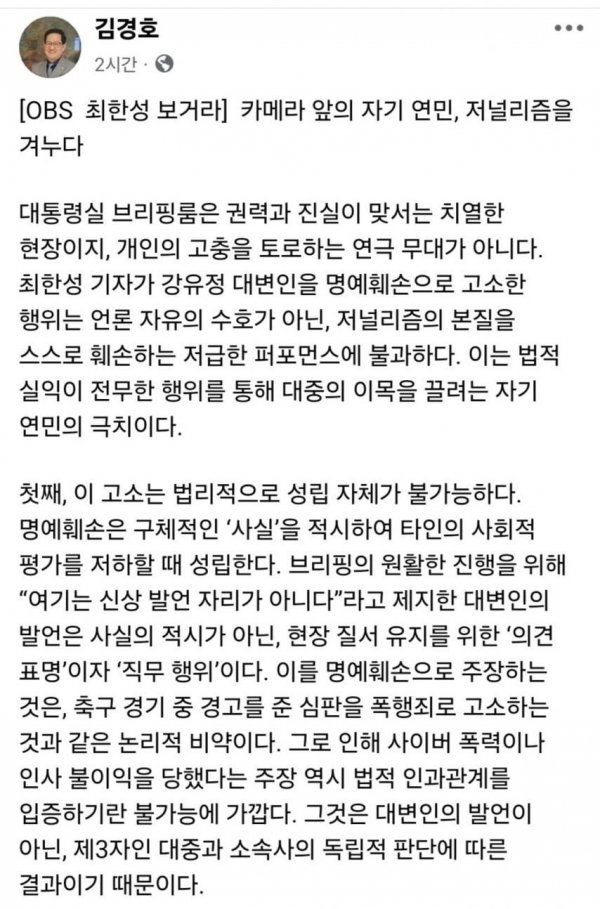 OBS 최한성, 신상발언을 대통령실 브리핑룸에서 News2025. 8. 24. 10:00