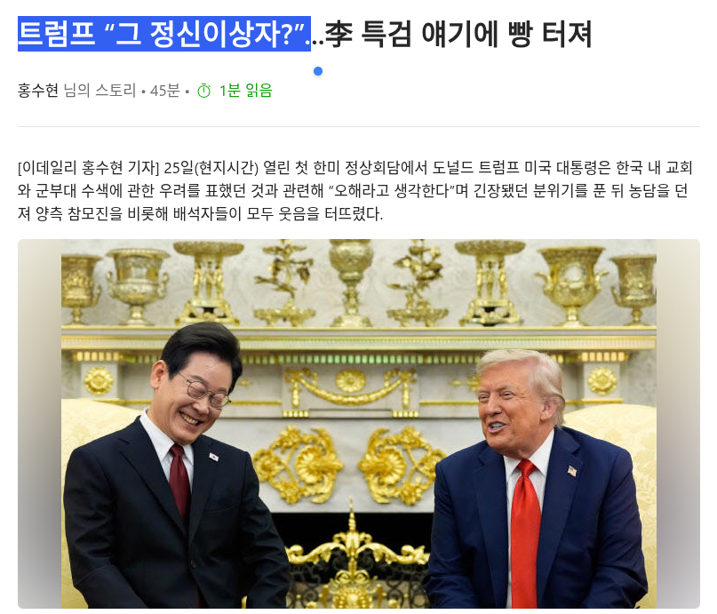 한미실무회담 이악물고 써내려가는 내란의 힘과 기레기들 기사 News2025. 8. 26. 10:57