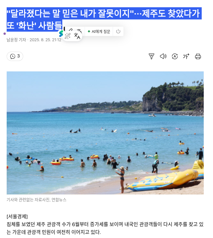 "달라졌다는 말 믿은 내가 잘못이지"…제주도 찾았다가 또 '화난' 사람들 News2025. 8. 26. 17:07