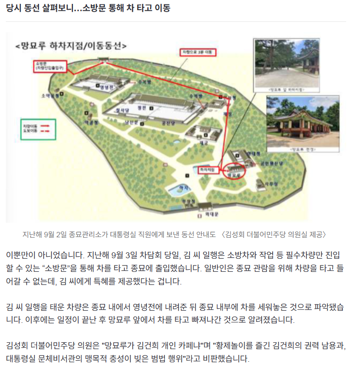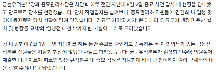 지난해 JTBC 보도로 알려진 윤석열 전 대통령 부인 김건희 씨의 '종묘 차담회'와 관련해, 대통령실이 나서서 김 씨의 차담회를 조율하고 국가유산청은 김 씨에게 각종 특혜를 제공한 것으로 확인