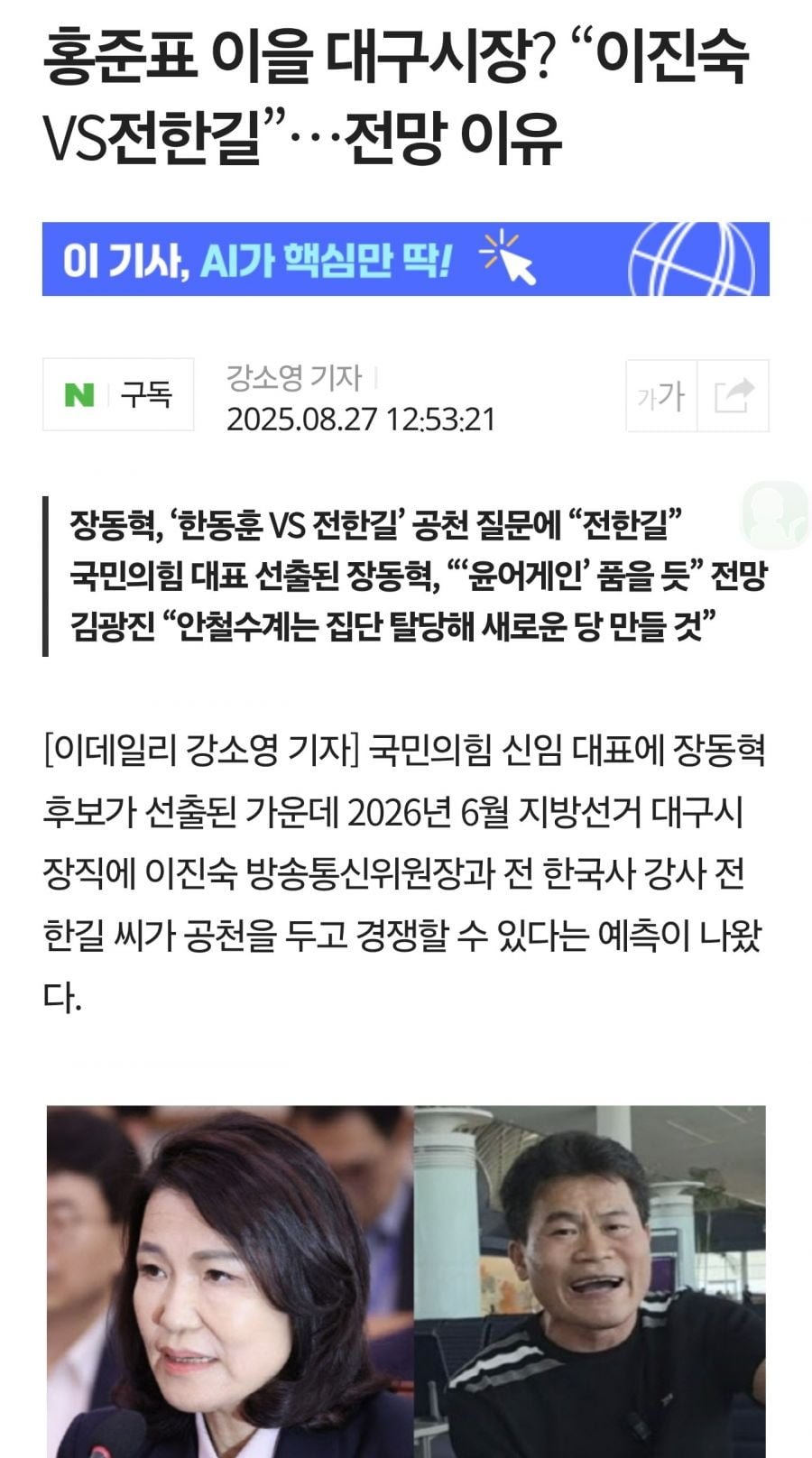 TK 의 미래 도지사 혹은 시장 후보, 대구시장설 미리 축 News2025. 8. 27. 17:16