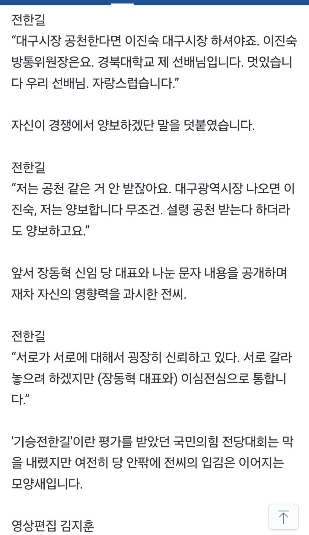 대구시장 출마를 위해?