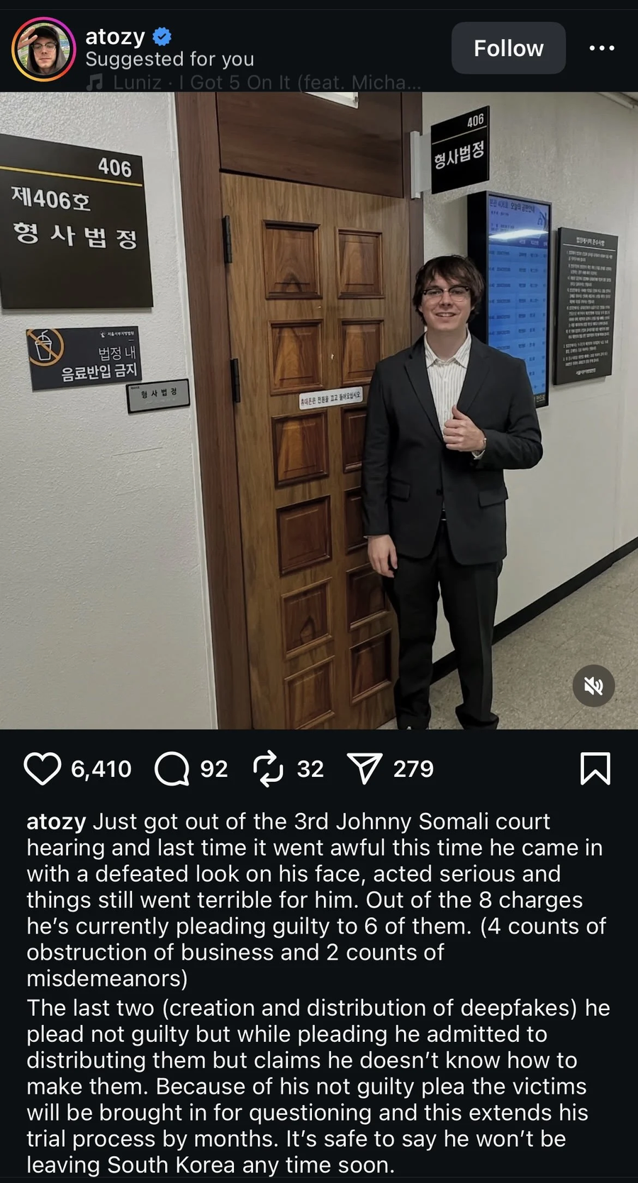 조니 소말리 근황, "현재 죄목으로 당장 판결 내리기는 어렵다" News2025. 8. 30. 00:27