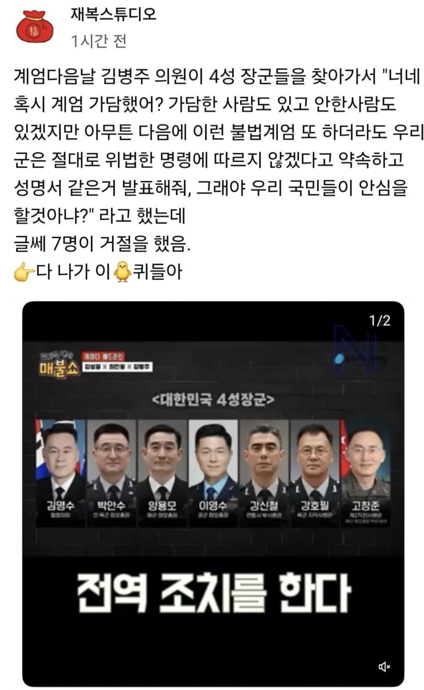 4성 장군들 전역시킨 배경, 미필들은 이해 못하는 연대책임 그리고 계엄내란수괴가 제2,제3의계엄을 발표할것이다라고 국민들이 불안에 떨었던 시기