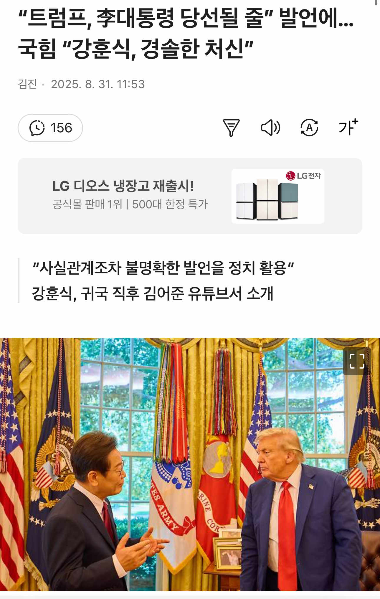 “트럼프, ✔️ 李대통령 당선될 줄” 발언에… News2025. 8. 31. 16:55