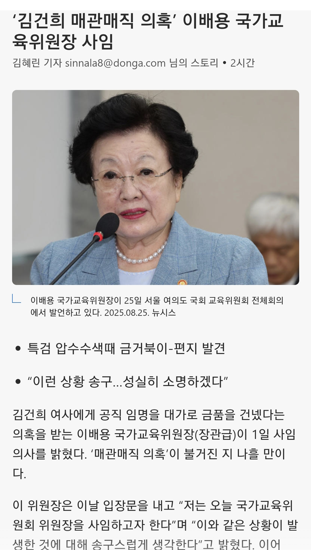 ‘김건희 매관매직✔️ 의혹’ 이배용 국가교육위원장 사임 News2025. 9. 1. 13:02