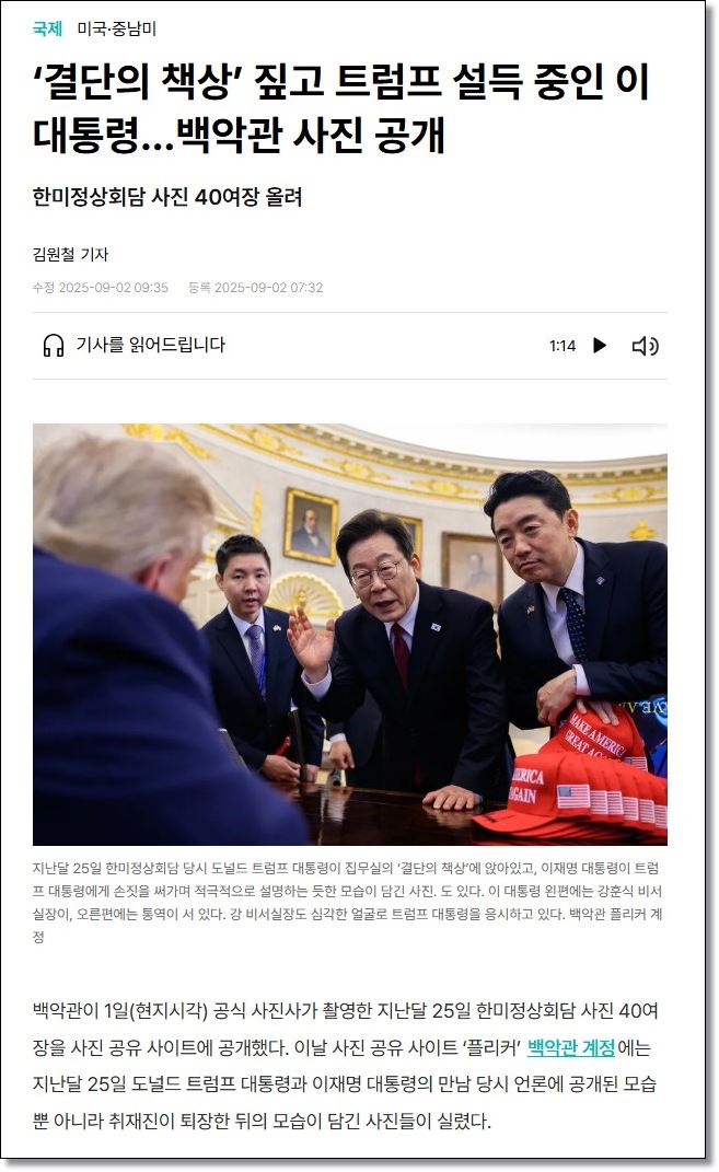 백악관에서 공개한 결단의 책상 짚고 설득중인 이대통령 News2025. 9. 2. 12:45