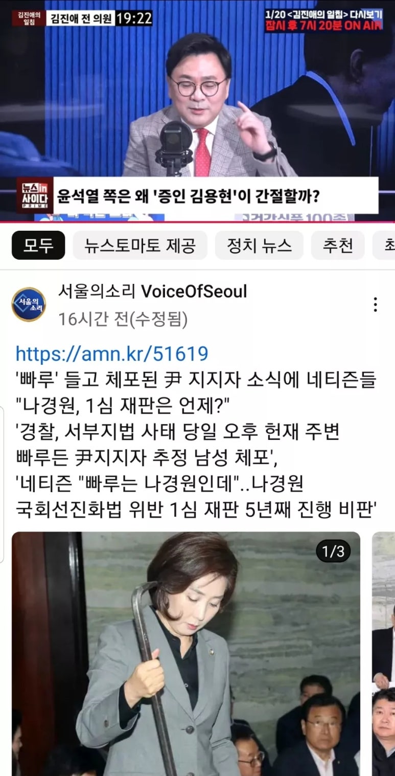 [서울의소리] `빠루` 들고 체포된 尹 지지자 소식에 네티즌들 "나경원, 1심 재판은 언제?"